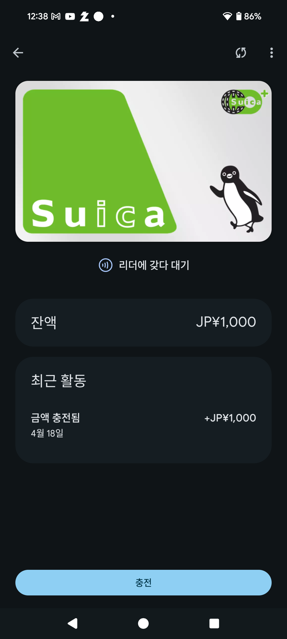 PASMO는 Google Pay를 통한 충전을 한국 발행 카드로는 이용할 수 없다. (아예 사용할 수 없는 카드라는 메시지를 선제적으로 띄워 선택이 불가능하다. 앱 내 충전의 경우 시도해보지 않아 불명.)